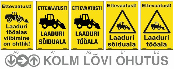 Tööstussõidukite tööala ja sõidualatähistamise märgid (tekst vastavalt vajadustele).