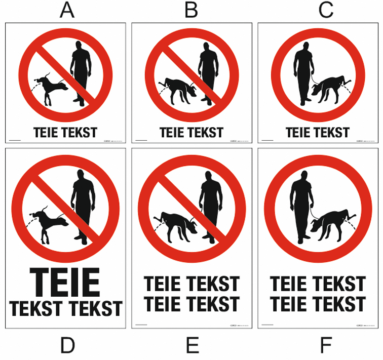 Koerte pissitamist keelavad märgid (200x200, 300x300, 200x300, 300x450mm).