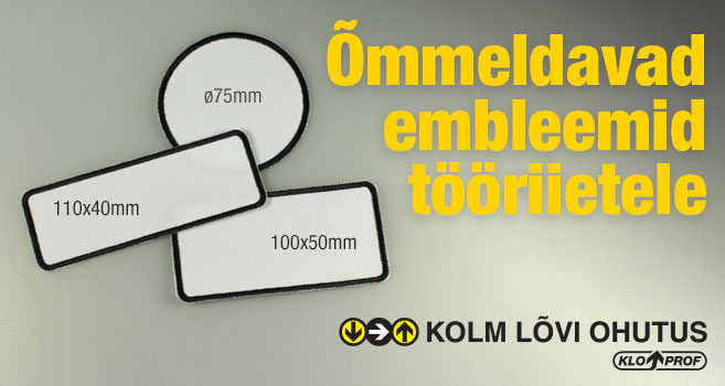 Õmmeldavadi embleemide aluseid on pakkuda ümmargune ø75mm, ristkülikud 110x40, 110x50 ja ovaalne 47x76mm.