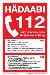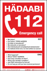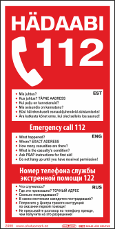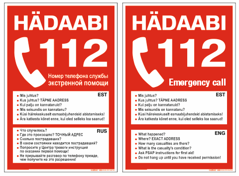 ART2095 - Hädaabi kõne juhend eesti- ja venekeelne; eesti- ja ingliskleelne juhend (ART2094). Erinevates mõõtudes 100x150 (näiteks aost EST-RUS üksik toode 3,28+km), Häpsemalt 100x150 ja 100x200mm kleebise  vaata hindasi siit