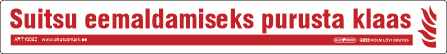 Suitsueemaldus (ART044-30x10KLB, 044-20x10KLB või ART044-013-30x10KLB) kleebis 300x100mm või 200x65mm kleebisena 8.21+km ja kaitsekilega kleebis 11.09+km. Pakis (10+) ostes on kleebise hind odavam.