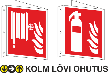 Seinast eenduvad tuleohutusmärgid näiteks tulekustuti ja tuletõrjevooliku kapp (rohkem infot siit).