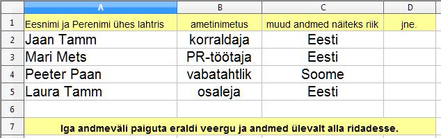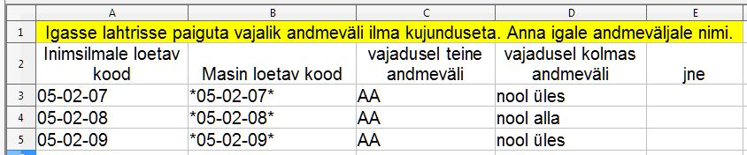 Kaelakaartide nimekirjade saatmine XLS failidena. Iga andmeväi paiguta eraldi veergu ja andmed ülevalt alla ridadesse.