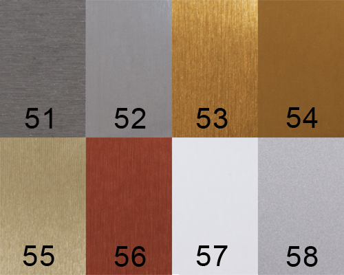 Olmemärkide valmistamisel kasutatavate toonitud alumiiniumi toonid (toote näidispildi siin). Kõikides toonides kõiki suuruseid ei ole võimalik saada. Erilahenduste puhul küsi hinnapakkumist. Pildil olev toon võib tegelikkuses erineda, pilt on mõledud ainult üldise visualiseeriva info jagamiseks.